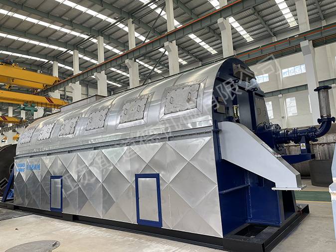 GSD型管柬干燥机结构为国固定的壳体内安装可转动的加热管束。蒸汽通过旋转接头进入管内传热变为冷凝水排出,物料中的水分在管外受热变成蒸汽,由负压风机排出,物料在管束内被转动的料铲抛洒,均匀落至加热管外表面,并从进料口端由料铲推动至出料口端,从而达到良好的干燥效果。